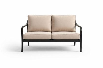 Outdoor Loveseat Metal Frame Beige Cushions