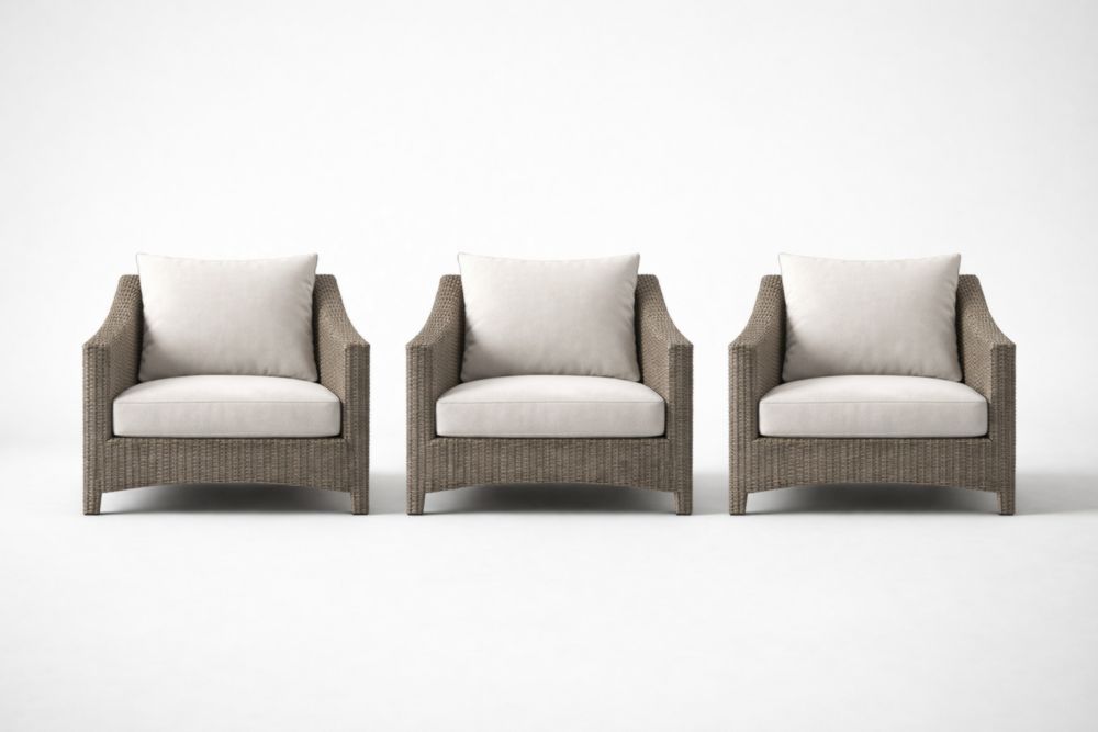Set of 3 Wicker Armchairs with Cushions Beige
