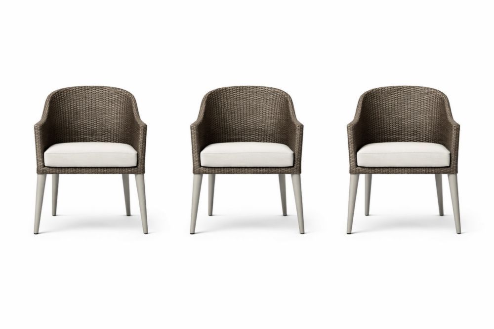 Wicker Armchair Set with Cushions 3-Pack Brown/Beige